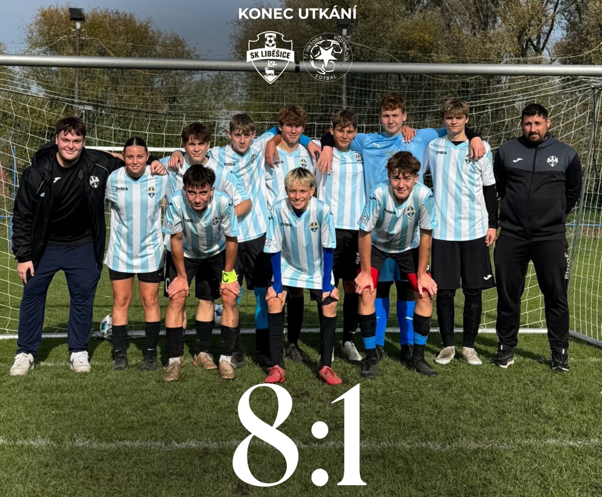 V sobotu jsme vyjeli do Třebenic. Očekávala se jednoznačná výhra, protože soupeř nasbíral pouhé 3 body a drží se ve spodku tabulky. Přesně to se taky stalo. Do poločasu jsme dali gólů 6 a v druhé půli připsali dalších 9. Zápas jsme tak vyhráli vysoko 15:0 a držíme se bezpečně na vršku tabulky.